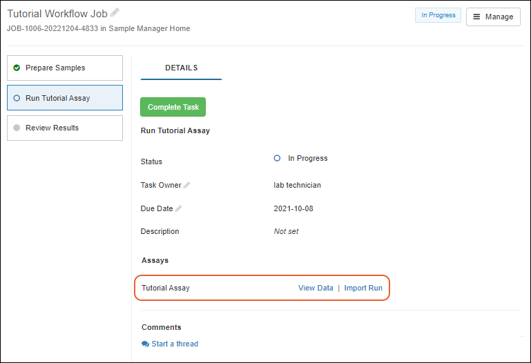 Workflow Task would let you link this run to a specific workflow task. Leave this blank for the tutorial.