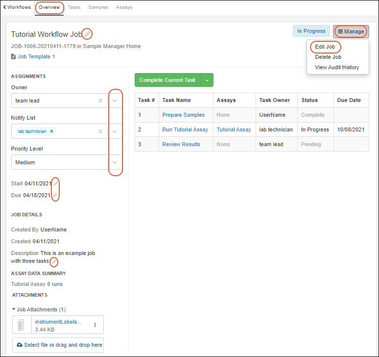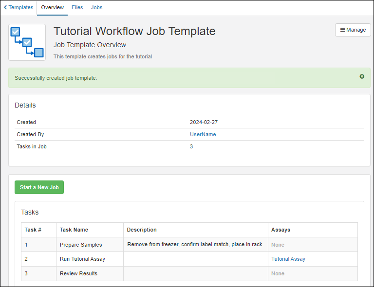 Your laboratory workflow can be managed by creating workflow jobs for the sequences of tasks your team performs. Add your users, set permissions, and organize your jobs and templates following these topics: