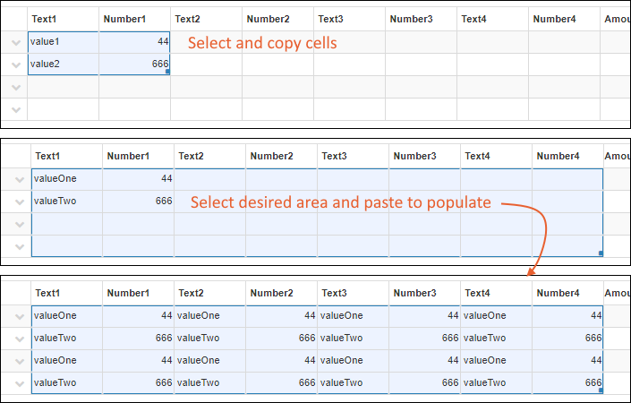 The other tabs in the Import Data interface allow you to copy and paste data from a spreadsheet or enter values directly in a grid, individually or in bulk. Learn more in this topic: