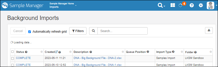 When complete, you will see the samples listed.