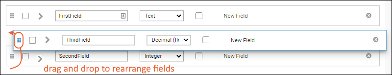 Click Add Field to add another row, enter then name "Concentration" and select "Decimal (floating point)" as the data type.