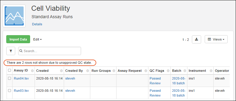 Visibility of assay data in Biologics can be controlled by setting quality control states. While an admin can edit assay designs to use QC states within the Biologics application, the actual states themselves cannot be configured in the application.