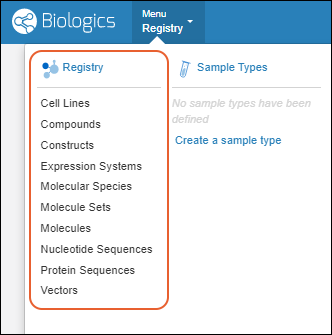 Bioregistry forms the team's shared knowledge base, containing detailed information on your sequences, cell lines, expression systems, and other research assets. The application is prepopulated with common Registry Source Types.