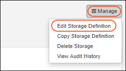 Manage > Edit Storage Definition.