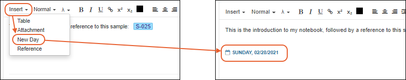 Insert > New Day. A