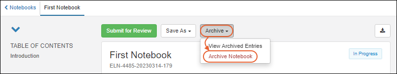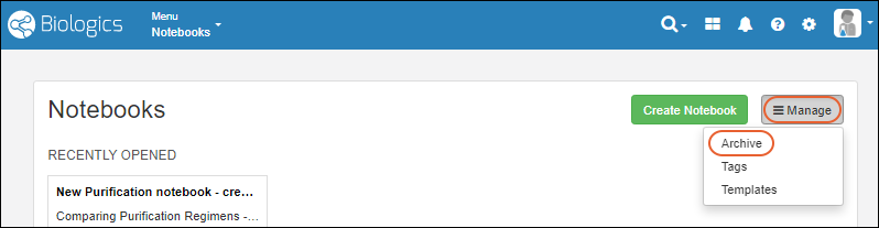 archived Notebooks list and click
