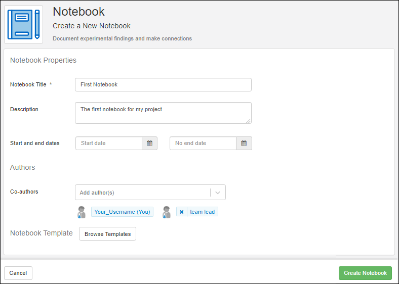 Notebooks give you a place to collaboratively record your research. You can have as many notebooks your team requires. Use custom tags to categorize them by project, team, or any other attribute you choose. This topic covers the process of authoring a notebook, including creating it, adding to it, editing it, and submitting it for review.