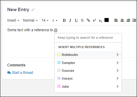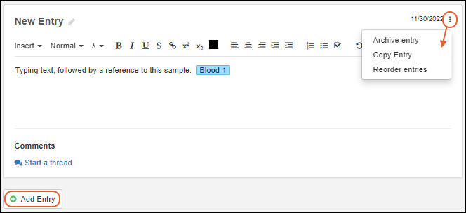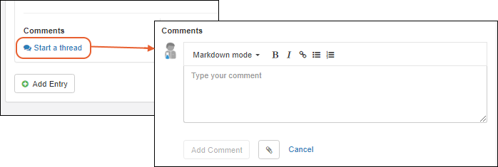 Start a thread to add a comment to any entry. Each entry supports independent comment threads, and an entry may have multiple independent comment threads for different discussions.
