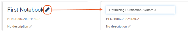 to rename a notebook. Non-authors will not see the edit icon. While the system does not require names to be unique, you will want to choose something that will help your colleagues identify it on lists and dashboards.
