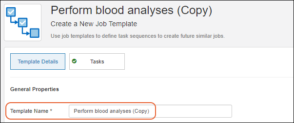The initial name of the template will be the original name plus "(Copy)" and the description, tasks, and attachments will match the original template. You can