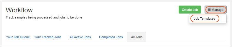 Manage > Job Templates from the workflow dashboard: