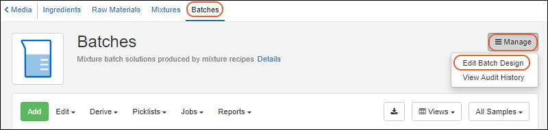 Manage > Create Mixture Batch from any mixture detail page to include that mixture in your batch.