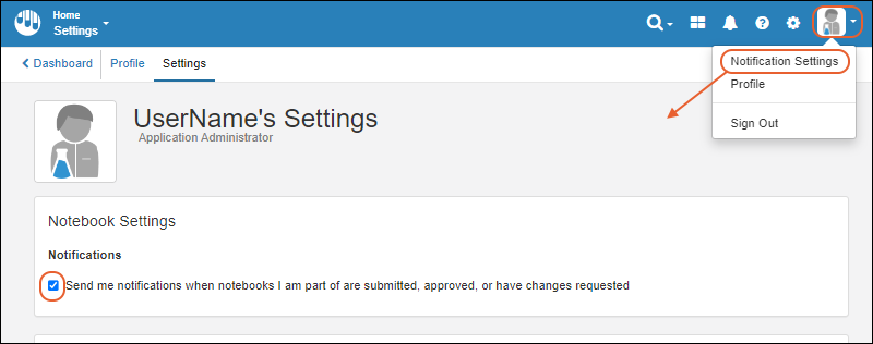 - Send me notifications when notebooks I am part of are submitted, approved, or have changes requested