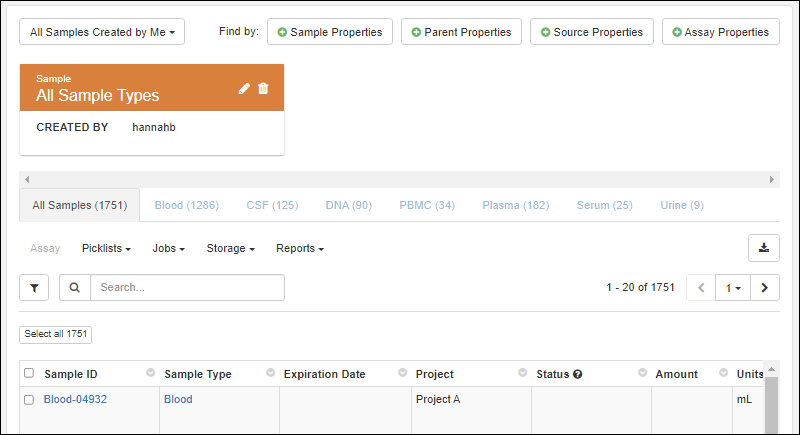 All Sample Types where the
