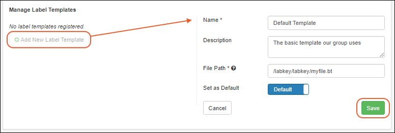 Click Add New Label Template for each template you want your users to be able to use. If you are using multiple Folders, templates can only be defined in the top-level home.