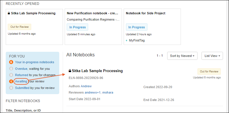 In the Biologics LIMS, electronic Lab Notebooks can be organized and color coded using tags, helping users group and prioritize their authoring and review work. New tags can be defined during notebook creation or in advance. You could use tags to represent projects, teams, or any other categorization(s) you would like to use. Each notebook can have a single tag applied.