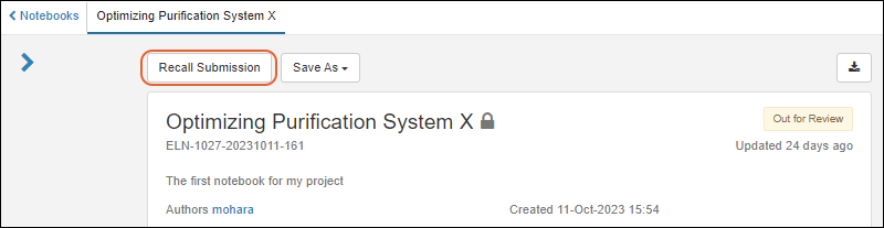 When an ELN notebook is recalled by an administrator, the author will now receive an email notification, improving visibility and timely follow-up. SM-VAL-25.11.B