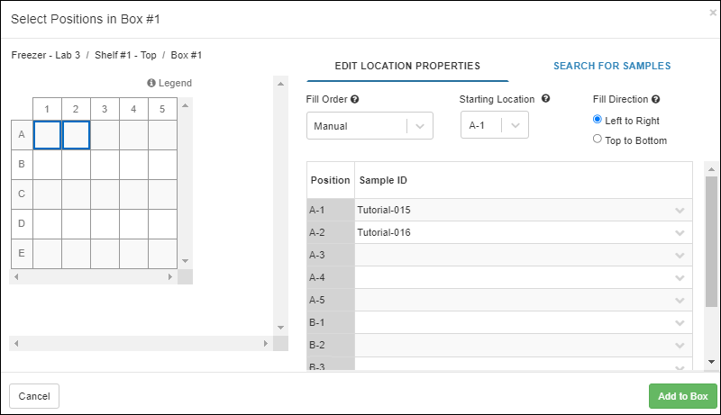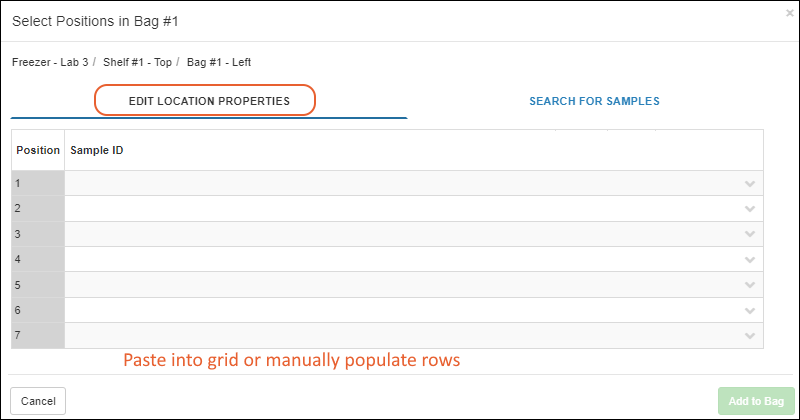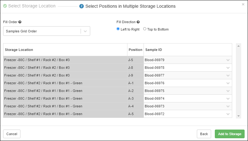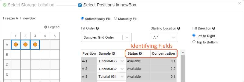 Improved experience when adding samples to storage - the "Search for Samples" grid now includes the Identifying Fields for a Sample.