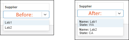Before applying the above, the user would only see the lab name. After adding the above, the user would see both the name and state when using the same dropdown.
