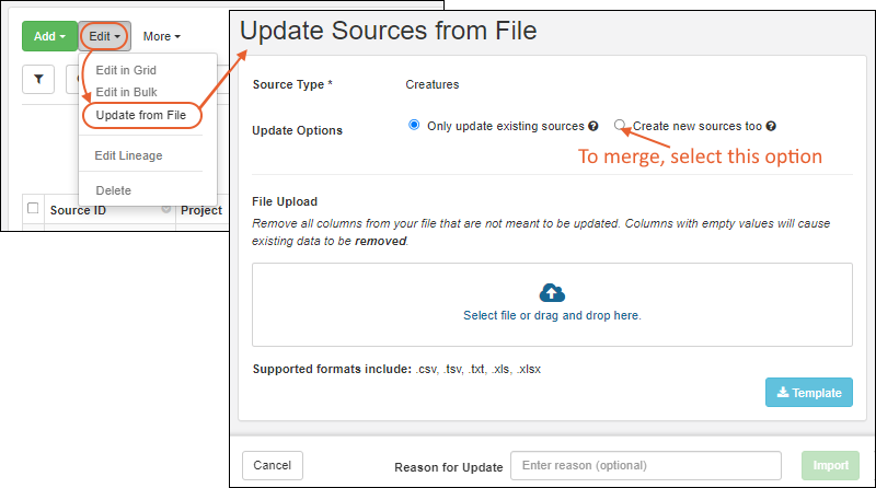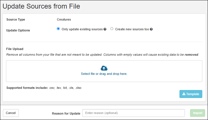 Improved import feedback: When attachment fields are supplied with data in a file import or file update for Sources, users will be provided an error message that Attachment data cannot be provided via a file. SM-VAL-25.7-C