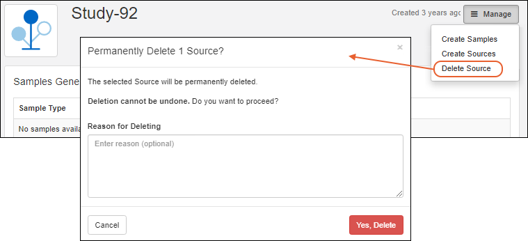 Users can enter a reason when they make changes to a Sample Type, Source Type, or Assay Design. SM-VAL-25.6-B (docs)