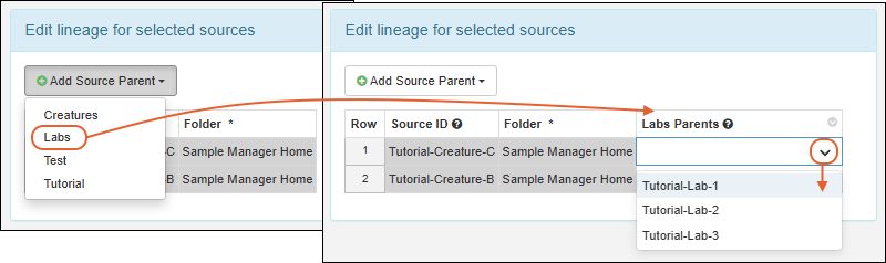 A simplified interface for editing lineage and storage information replaces the previous additional tabs on editable grids. SM-VAL-24.11-D (docs)